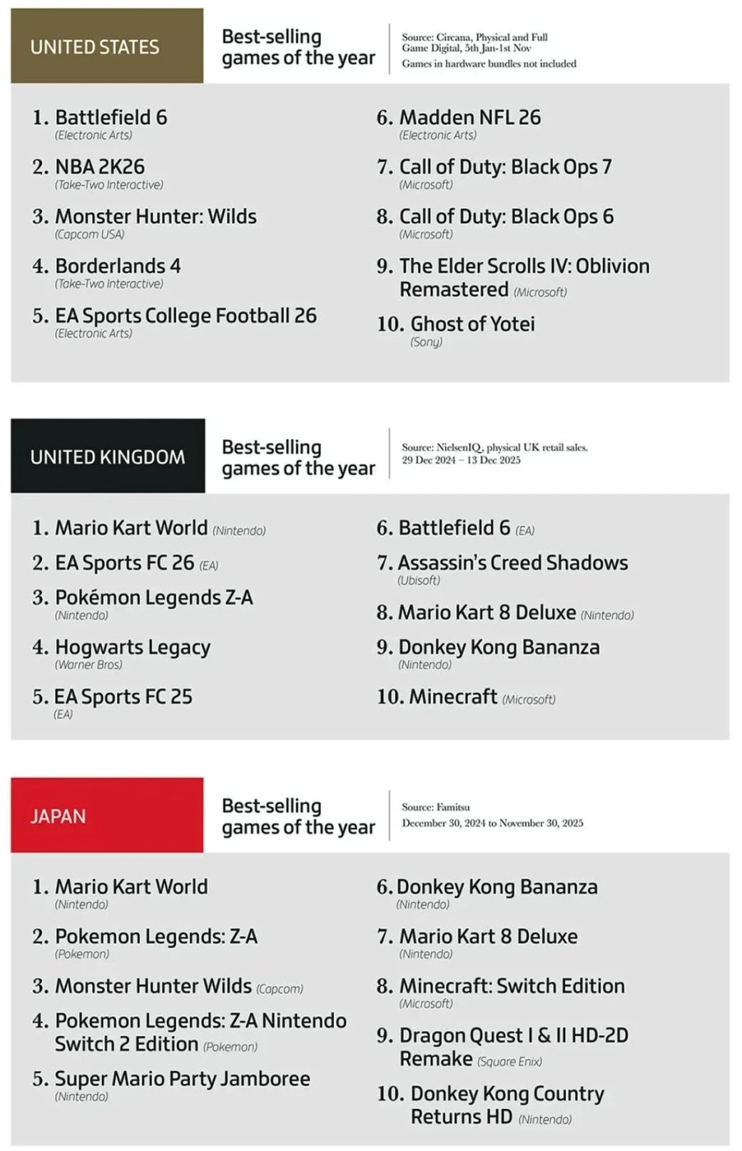 Главные новости » Эксклюзив » Battlefield 6, GTA 6 и Mario Kart World на вершине — итоги 2025 от аналитиков