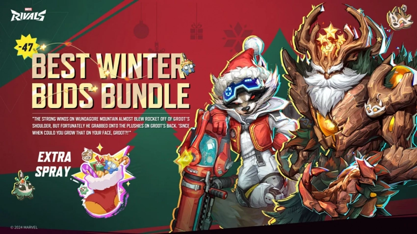 Само мероприятие продлится до 9 января, причём параллельно авторы объявили, что новогодний набор со скинами для Ракеты и Грута можно приобрести со скидкой в 47%.