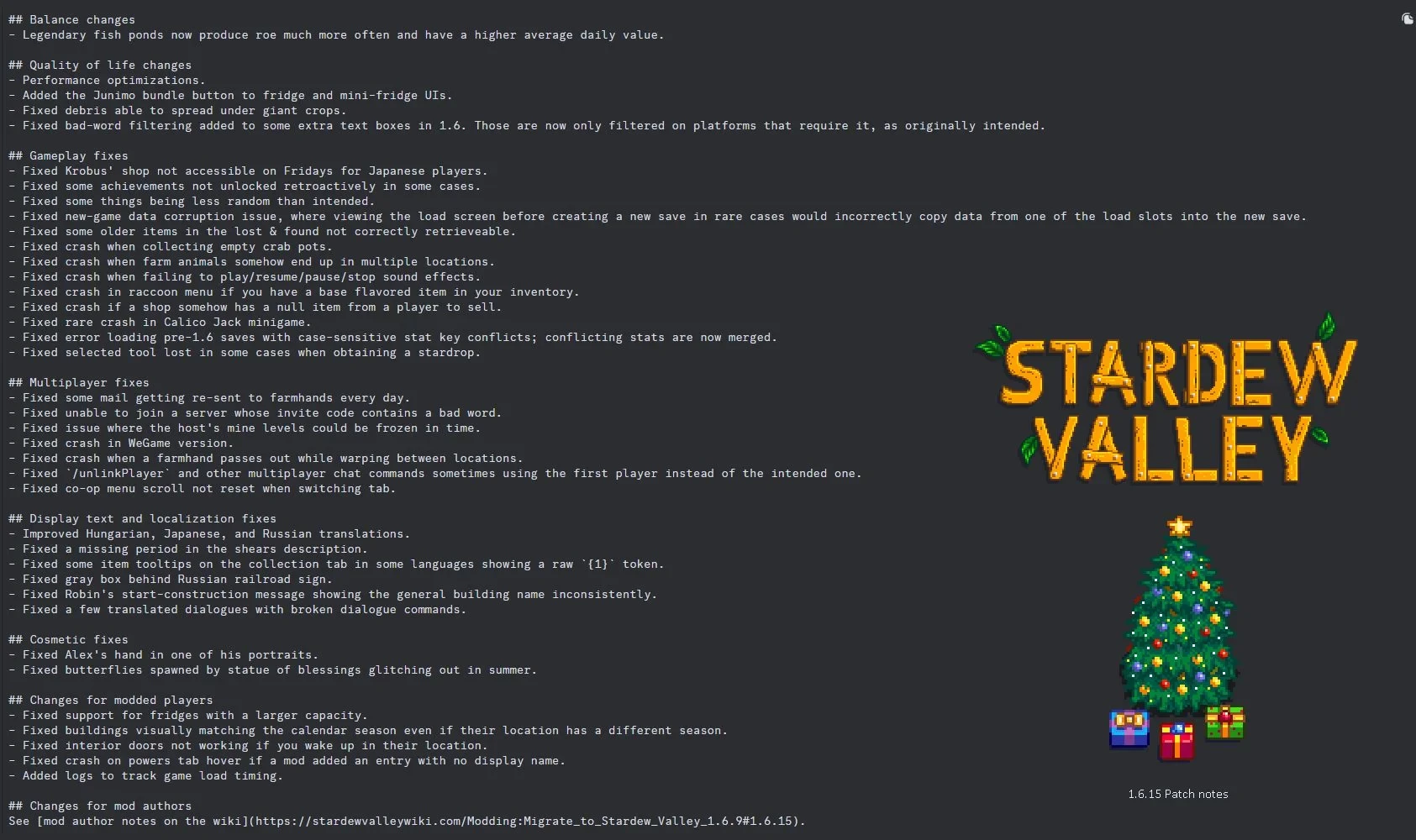 Свежий патч исправляет ряд игровых ошибок, в том числе в мультиплеере, а также улучшает поддержку отдельных модификаций. Он также повышает оптимизацию и устраняет насильственную цензуру из кооператива: игроки теперь могут присоединяться к серверу с непристойными словами в названии.