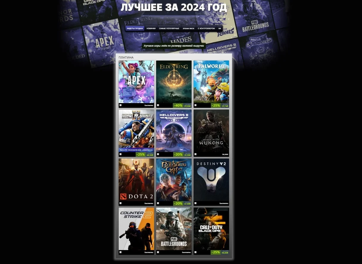 Baldurs Gate 3 и Black Myth: Wukong вошли в топ самых продаваемых игр 2024 года в Steam