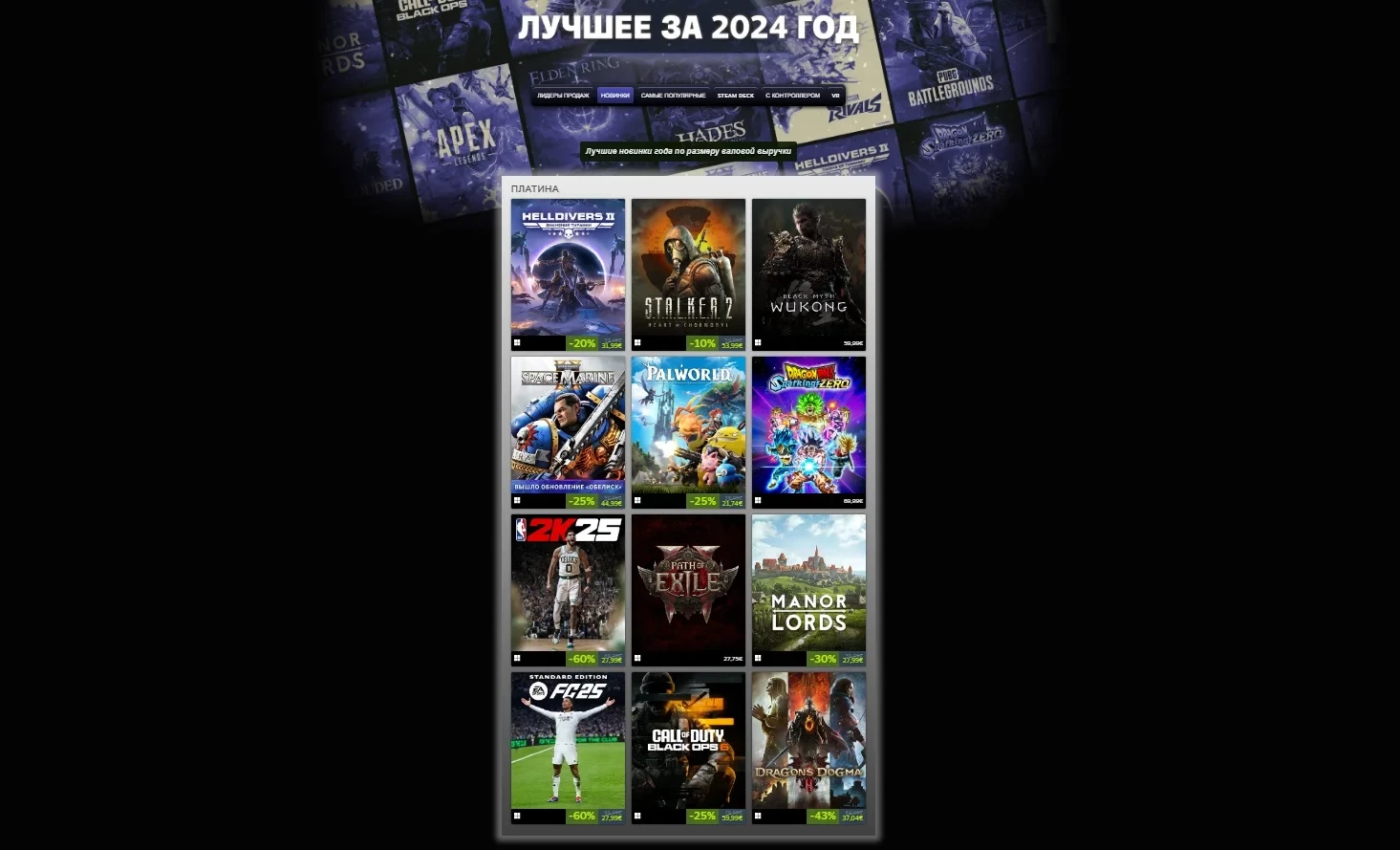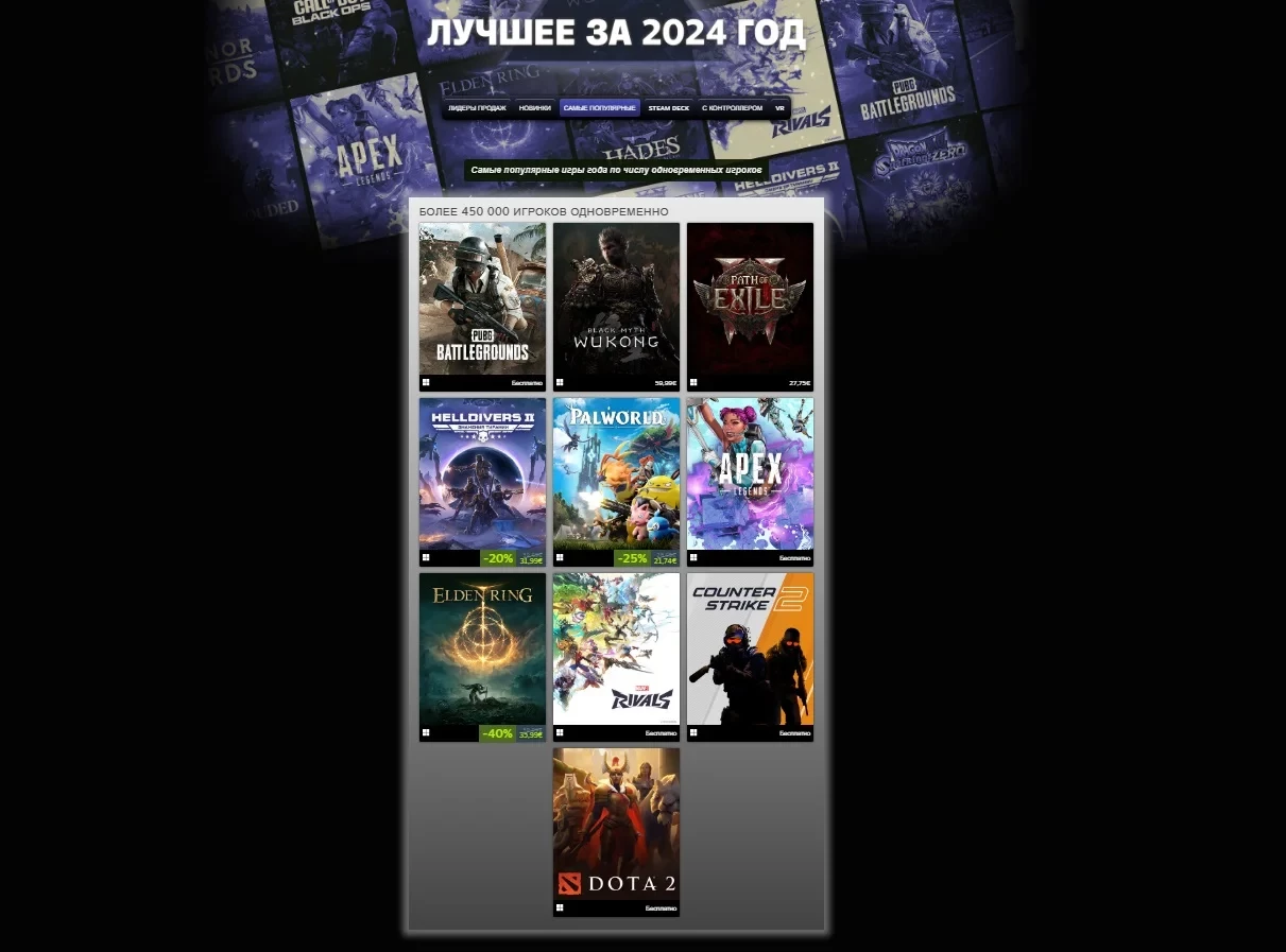 Платиновый список лучших игр года по числу одновременных игроков — более 450 тыс