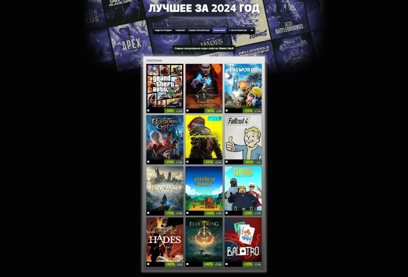 4 фотоПлатиновый список самых популярных игр года на Steam Deck