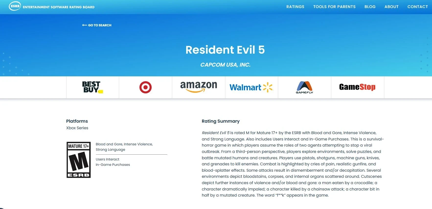 Намёк на ремейк Resident Evil 5 нашли на сайте ESRB