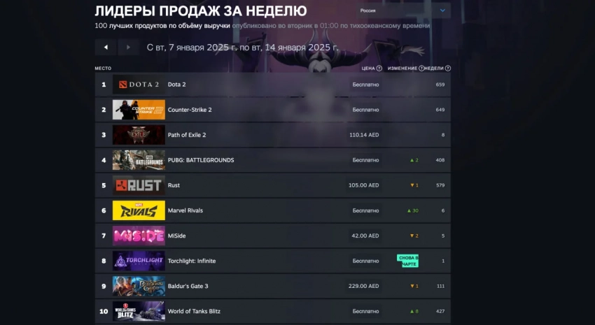 Чарт Steam с 7 по 14 января 2025 года