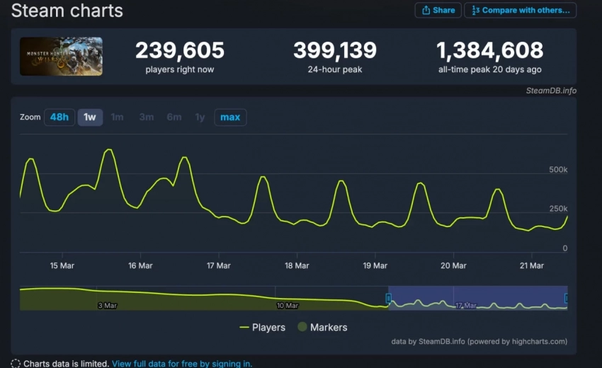 В свежем чарте Steam приключение опередил хоррор R.E.P.O. и Split Fiction с CS2, но Wilds всё равно смогла удержать за собой четвёртое место.