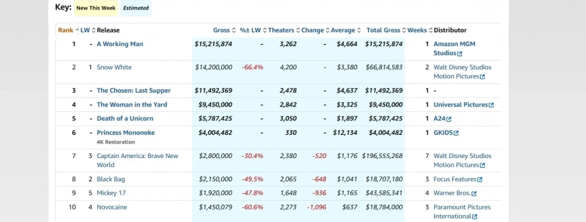 Свежий топ-5 кассовых сборов в прокате в США за период с 28 по 30 марта 2025 года: