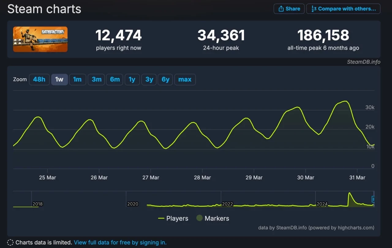 Satisfactory вышла из раннего доступа в сентябре прошлого года — игра получила «крайне положительные» оценки в Steam, и сразу после релиза поставила рекорд пикового онлайна на площадке.