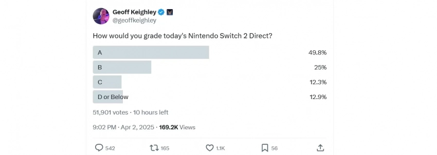 Геймерам нравится: Джефф Кили просит оценить презентацию Nintendo Switch 2 в голосовании