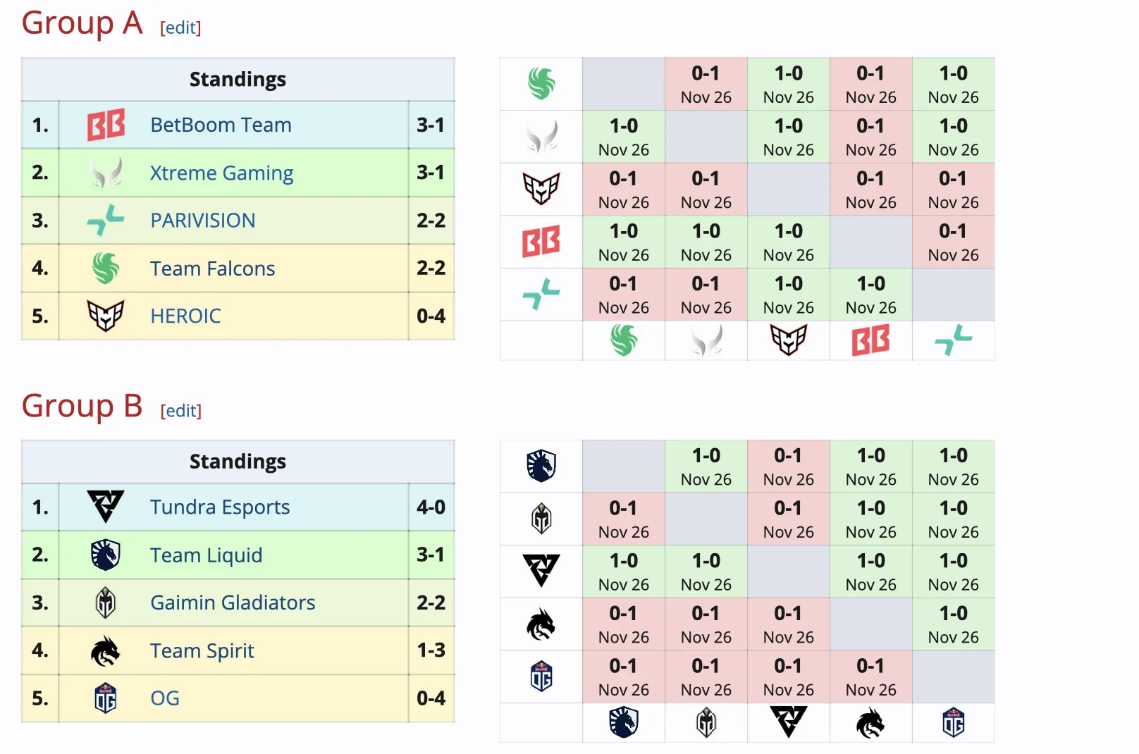 Последние места в группах заняли Team Spirit и HEROIC, Team Falcons и OG — они начнут выступление в нокаут-стадии с первого места. Проигравшие в этих и следующих встречах будут покидать турнир, а победители проходить дальше по сетки.