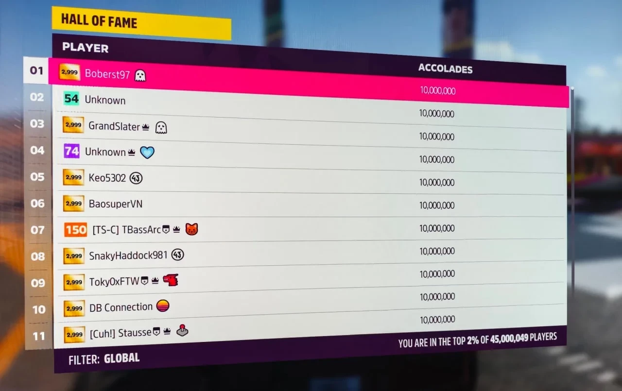 Общее число игроков «Форзы» отражается в местном «Зале славы», поэтому следить за статистикой гонки довольно легко.