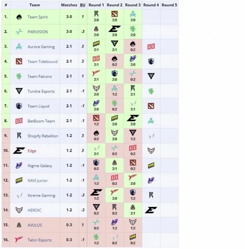 У Aurora всё ещё сохраняются шансы добраться до той же стадии, но для этого команде теперь нужно победить целую «пачку» соперников, включая Team Tidebound, Team Falcons, Team Liquid, Betboom Team и Tundra Esports.
