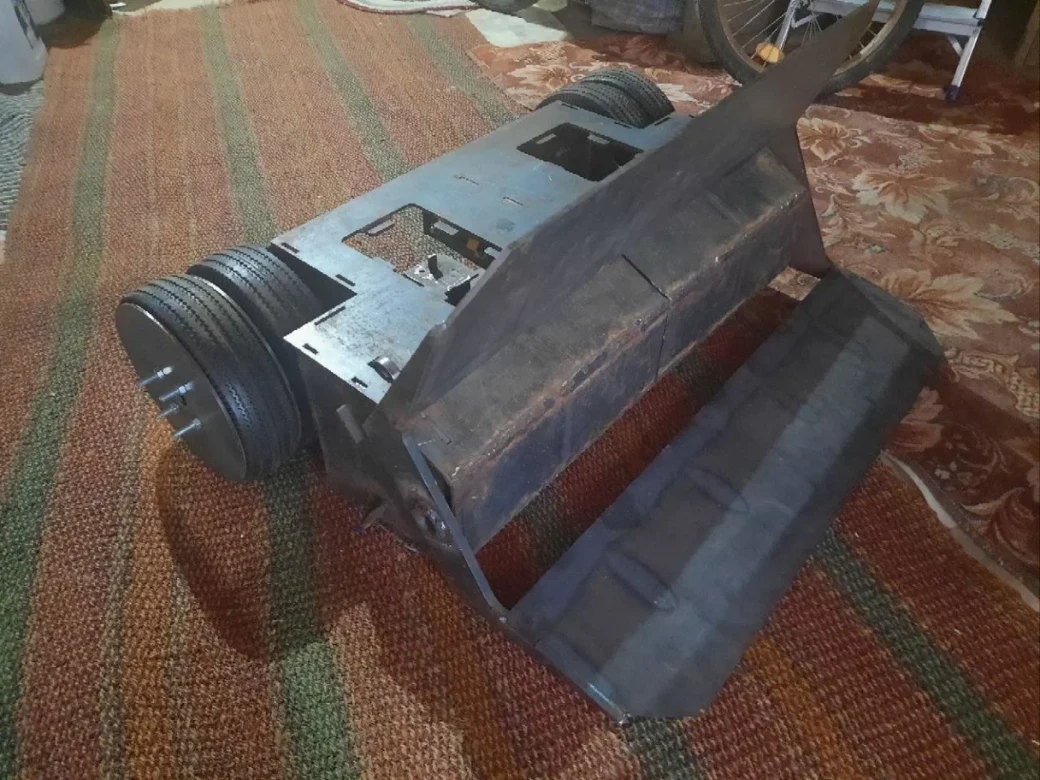 Бронированный робот «Птенец» весит 80 кг и передвигается по рингу на колесах со скоростью 10 км/ч. Его корпус, выполненный из металлических листов, дополнительно защищен пластиковыми панелями. Клюв робота представляет собой стальной ковш-отвал, из которого по мере необходимости выдвигается циркулярная пила, предназначенная для атаки противника.