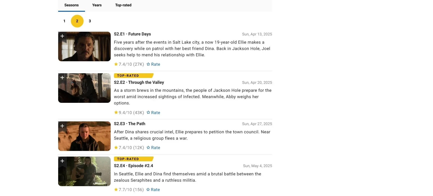 Самое интересное о кино на YouTube канале Игромании!Обложка: кадр сериала The Last of Us4-й эпизод второго сезона сериальной адаптации The Last of Us: Part II уже доступен к просмотру. На портале IMDb уже сформировалась его зрительская оценка — 7,7 балла из 10.