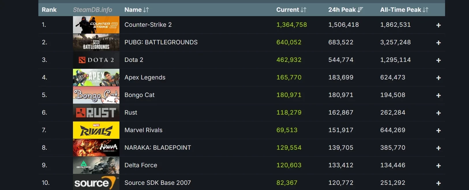 Отметим, что в момент написания новости Marvel Rivals входит в первую десятку игр с наибольшей аудиторией в Steam за последние 24 часа. Игра расположилась на седьмой строчке и смогла опередить королевскую битву Naraka: Bladepoint и шутер Delta Force. А вот выживалка Rust пока оказалась не под силам для супергероев Marvel — показатели максимального суточного онлайна обеих игр разделяют более 10 тысяч геймеров.
