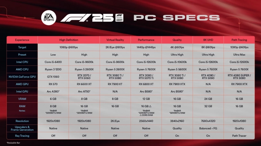 Авторы гоночной F1 25 раскрыли системные требования для игры в разрешении 8К и 60 FPS