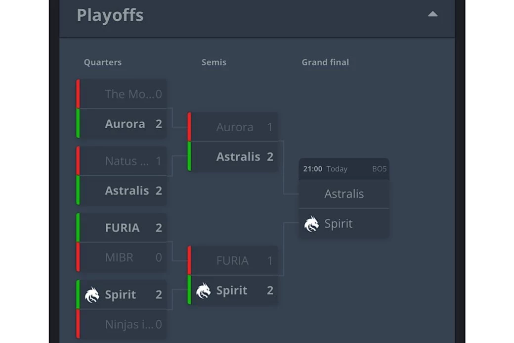 2 фотоОтметим, что для Spirit это первый финал с февраля, когда команда заняла второе место на IEM Katowice. Astralis, победившая Aurora в полуфинале (2:1), вышла в финал топ-турнира впервые с января 2021 года.