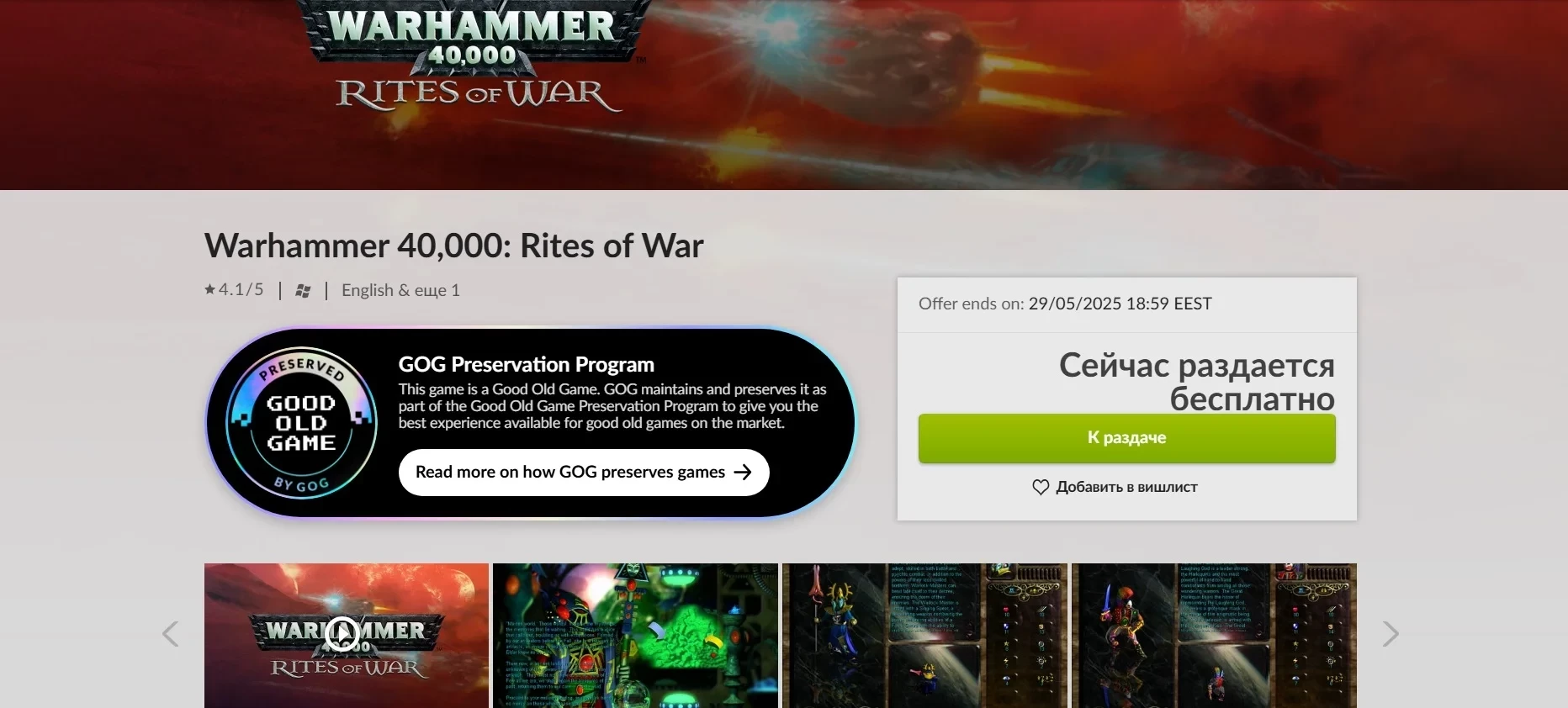 Warhammer 40000: Rites of War пополнила «программу сохранения игр GOG» — вместе с некоторыми другими играми франшизы, которые можно купить по выгодным скидкам. Это: