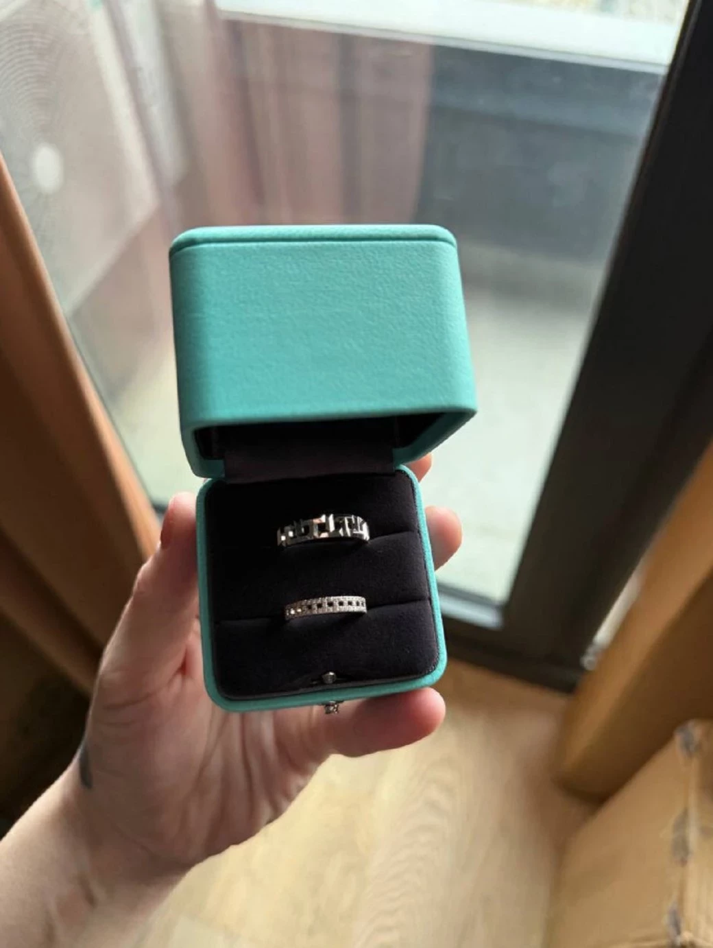Татьяна подробнее рассказала про обручальные кольца. Так, жена будет носить узкое кольцо True из белого золота с паве из бриллиантов. Золото 18 карат покрыто родием для сохранения блеска. В зависимости от характеристик стоимость подобного украшения доходит до нескольких сотен тысяч рублей.