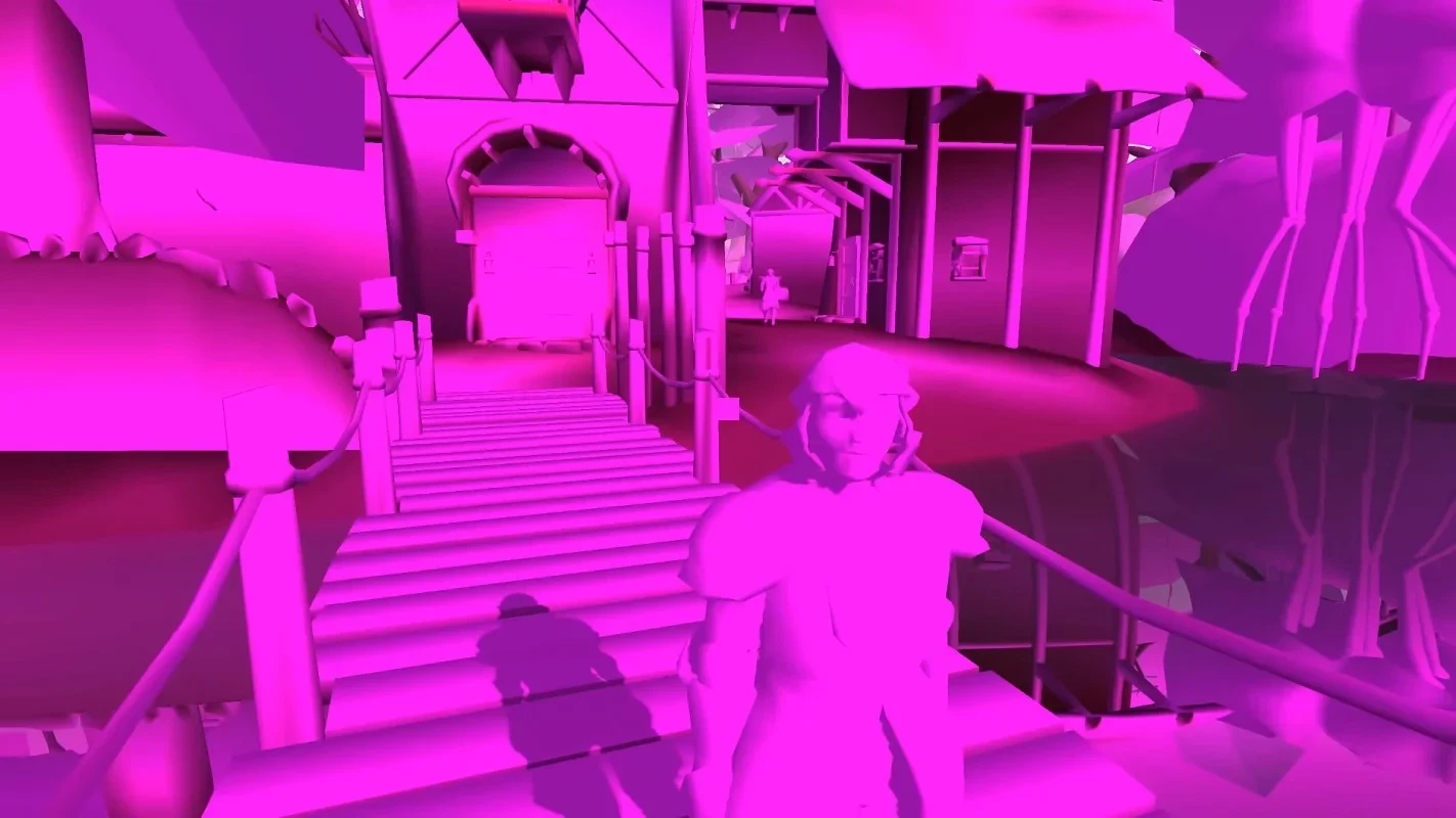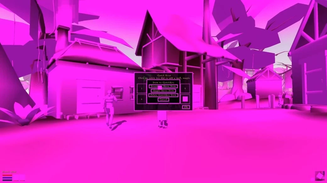 Вообще без текстур. Получилась такая голая и очень розовая (что-то вроде мадженты) Morrowind. В своём квесте Micky D использовал OpenMW и что-то ещё, что дало ему сил провести в этом новом мире больше 10 минут.