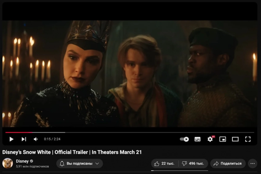 Часть аудитории в насмешку заявила, что доходы от ролика на YouTube будут у Disney больше, чем заработки от проката самого фильма. Многие ожидают, что лента станет провалом для студии, который к тому же соберёт вокруг себя много скандалов.