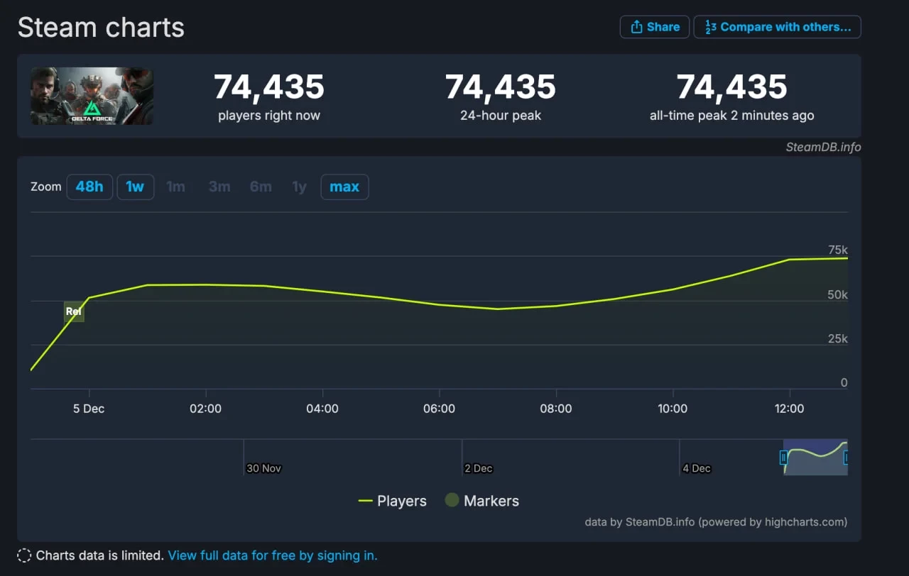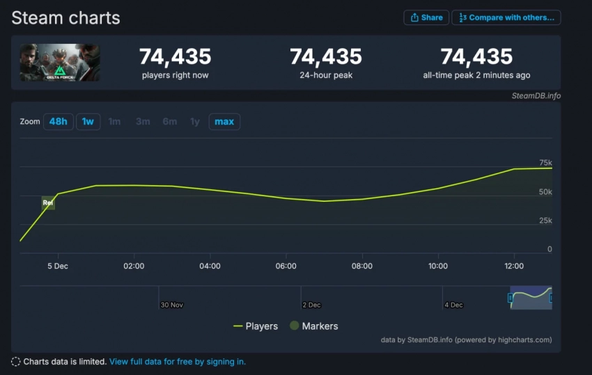 Правда, новинка всё равно пользуется популярностью у игроков — пиковый онлайн в Steam уже перевалил за 74 тысячи человек.