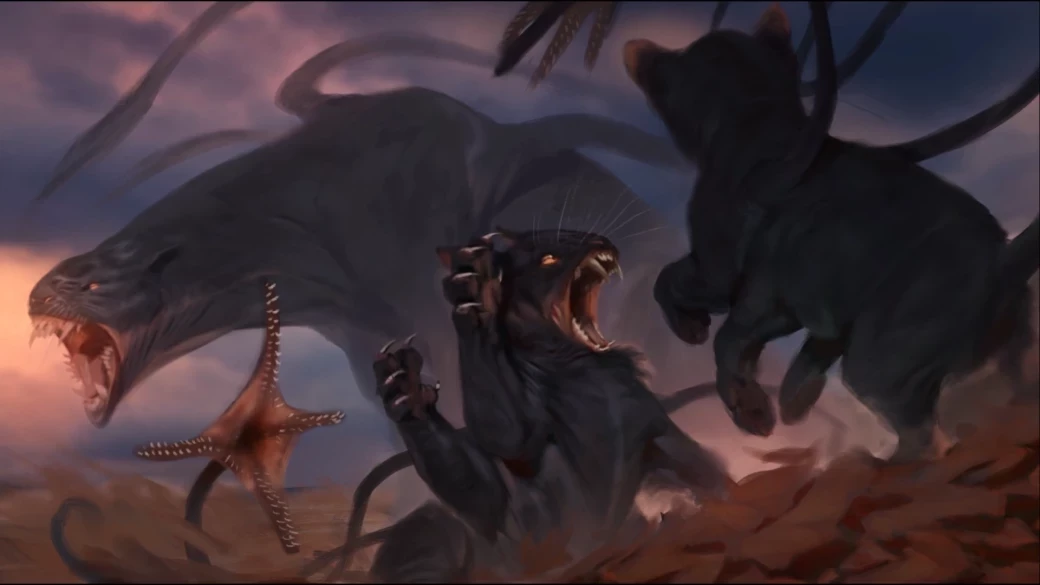 7 фотоНа артах можно увидеть атмосферное окружение, эпичных монстров и различных персонажей, включая крылатого кота (Трессим в D& D) и потенциальных компаньонов.