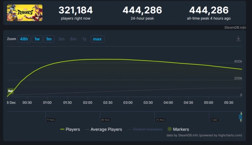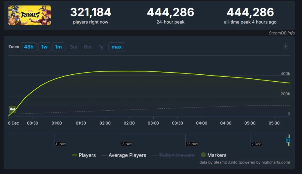 Шутер Marvel Rivals в духе Overwatch привлёк более 444 тыс игроков в Steam на пике онлайна