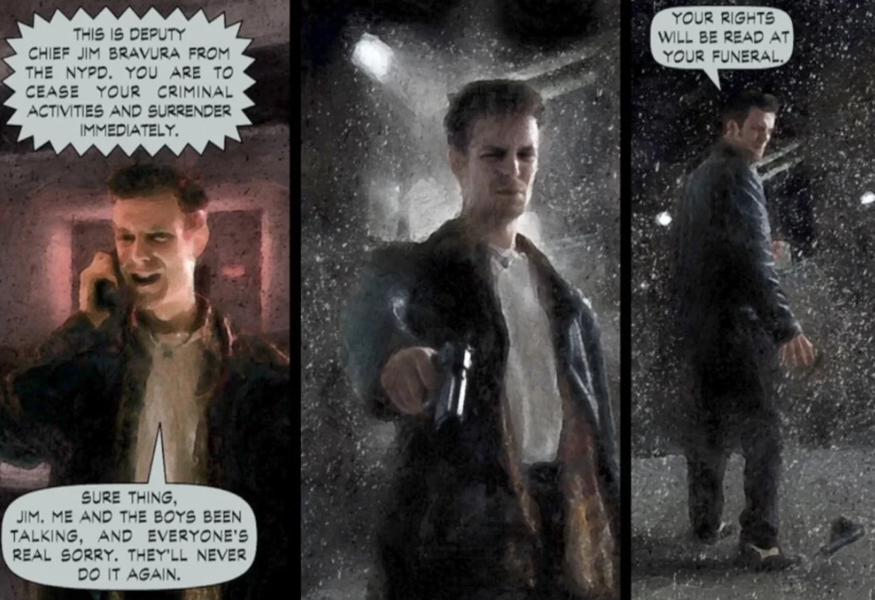 Решение сняться для комиксов в роли Макса Пейна также оказалось очевидным из-за уже имеющегося опыта. А в целом использование реальных фотографий в разработке Max Payne прошло несколько этапов. Сперва их хотели использовать лишь в качестве текстур окружения. Затем фото было решено сделать основой для персонажей, что вылилось в катсцены в виде комиксов.