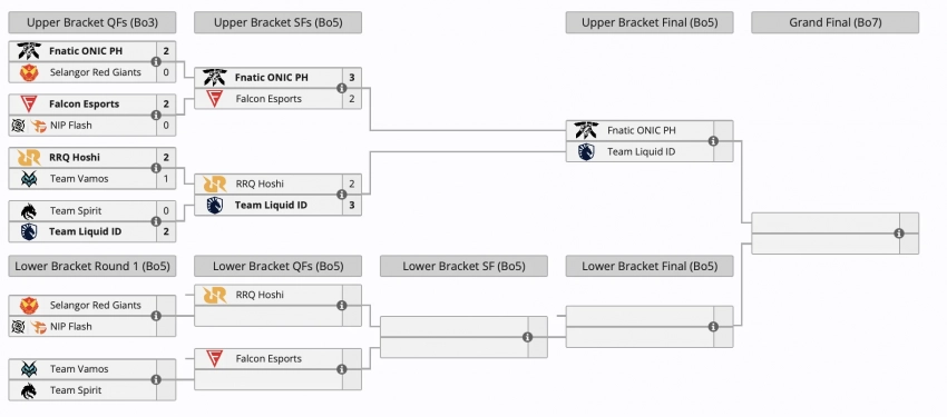 А вот в нижней сетке турнира борьба только разворачивается. Там будут сражаться Selangor Red Giants и NIP Flash в одной ветке и Team Vamos и Team Spirit — в другом. Напомним, «драконы» до этого проиграли Team Liquid ID со счетом 0:2. 10 декабря составы будут играть на выбывание.