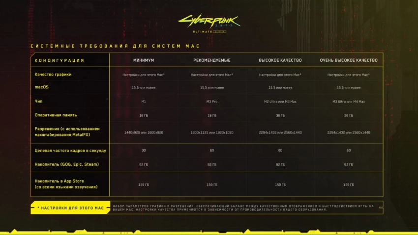 Напомним, что 17 июля Cyberpunk 2077 также доберётся до устройств Apple Mac. Разработчики из CD Projekt RED успели поделиться системными требованиями игры.