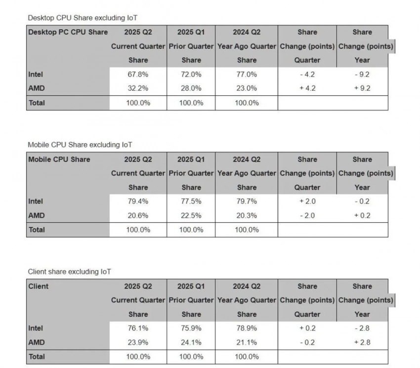 Аналитики: доля AMD на рынке процессоров значительно выросла, но Intel все ещё лидирует