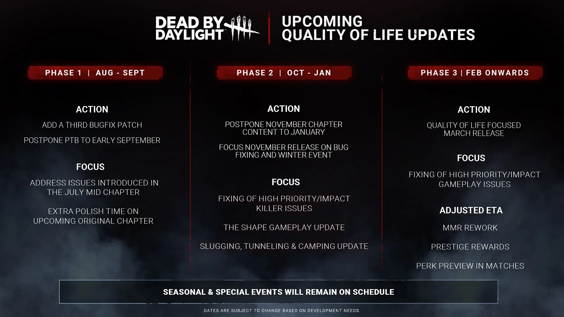 Ноябрьскую главу по лицензии переносят на январь 2026 года. В её составе ожидаются двое Выживших и один Убийца. Подробности неизвестны, но ходят слухи, что это может быть коллаборация с Resident Evil, «Очень странные дела» или Danganonpa.