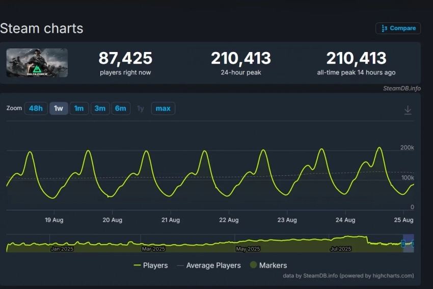 Пиковый онлайн шутера Delta Force в Steam превысил 210 тыс игроков одновременно