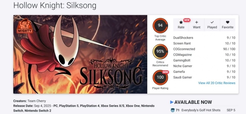 Критики ожидаемо в восторге от Hollow Knight: Silksong — оценка выше 90 баллов