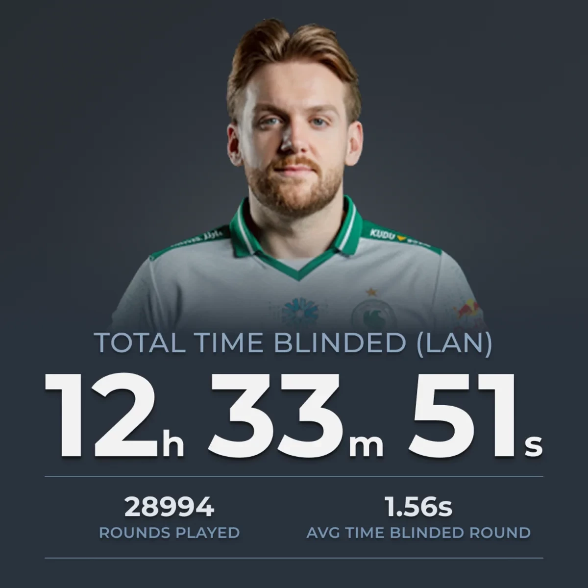 Автор подсчёта учитывал только офлайн-матчи и суммировал время под эффектом светошумовых гранат — метрика не оценивает влияние на исход раунда. Но наглядно показывает, как часто игрок попадает под флешки и насколько долго остаётся без обзора.