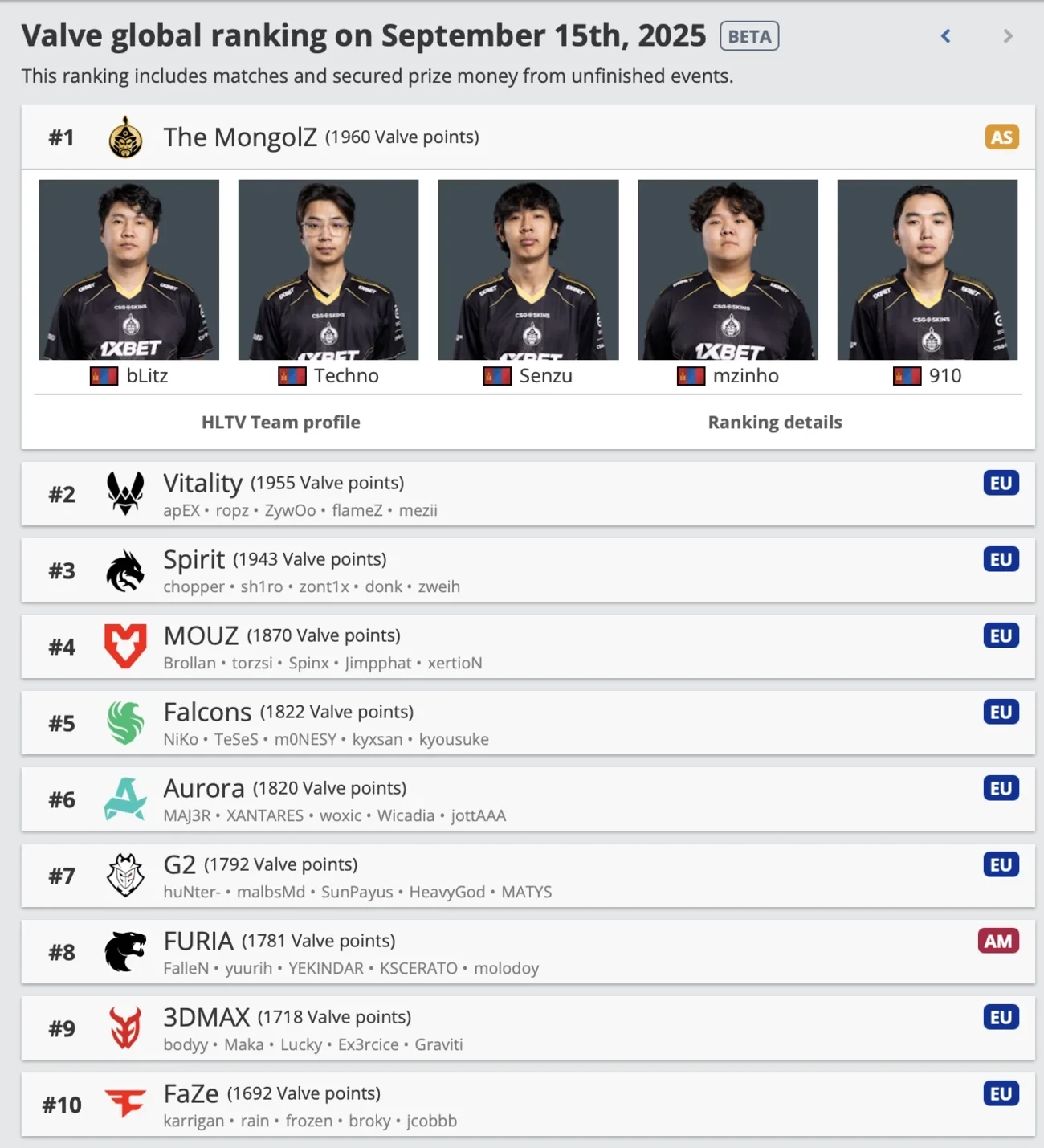 The Mongolz возглавила рейтинг HLTV по Counter-Strike 2