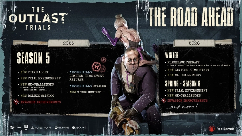 Именно тогда в The Outlast Trials начнётся шестой сезон. Детали новинок неизвестны, но игроки точно получат новые МК-испытания вместе с очередной картой. Также «Вторжение» вновь улучшится, но на этом новшества не закончатся — подробнее о шестом сезоне наверняка расскажут ближе к его началу.