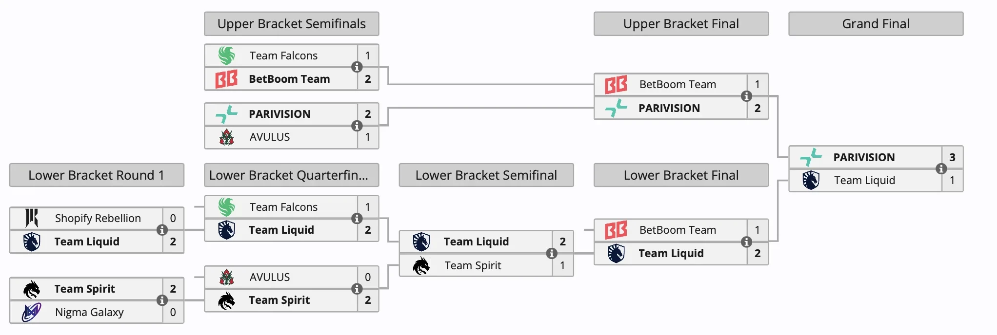 Отметим, что PARIVISION лидировала на протяжении всего турнира, сначала команда заняла первое место в группе, а затем прошла к финалу по верхней сетке.