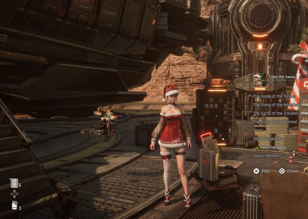 6 фотоТакже в лагере получится услышать праздничную расслабляющую музыку, а сама Ева сможет приодеться в костюм в стиле Санты с красными тонами. Дополнением к образу послужат и другие косметические предметы, включая серёжки. Причём нарядить можно и дрона — он будет летать с маской в виде оленя с гирляндами на рогах.