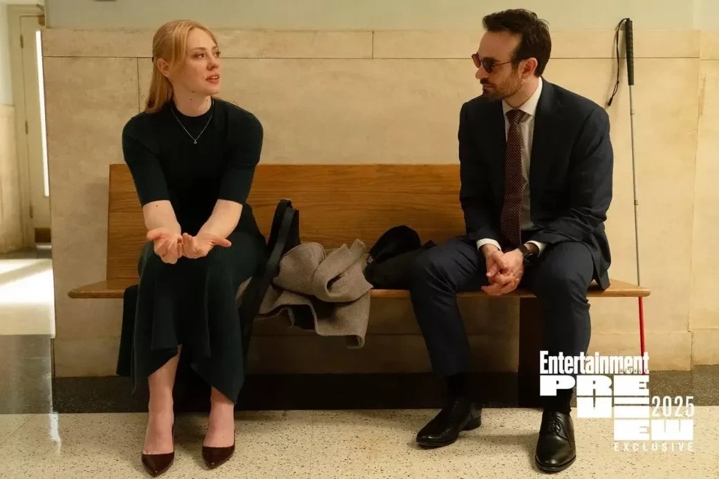 На снимках можно увидеть главного героя Мэтта Мердока в исполнении Чарли Кокса, а также Карен Пейдж (Дебора Энн Уолл) и главного антагониста Уилсона Фиска (Винсент ДʼОнофрио).