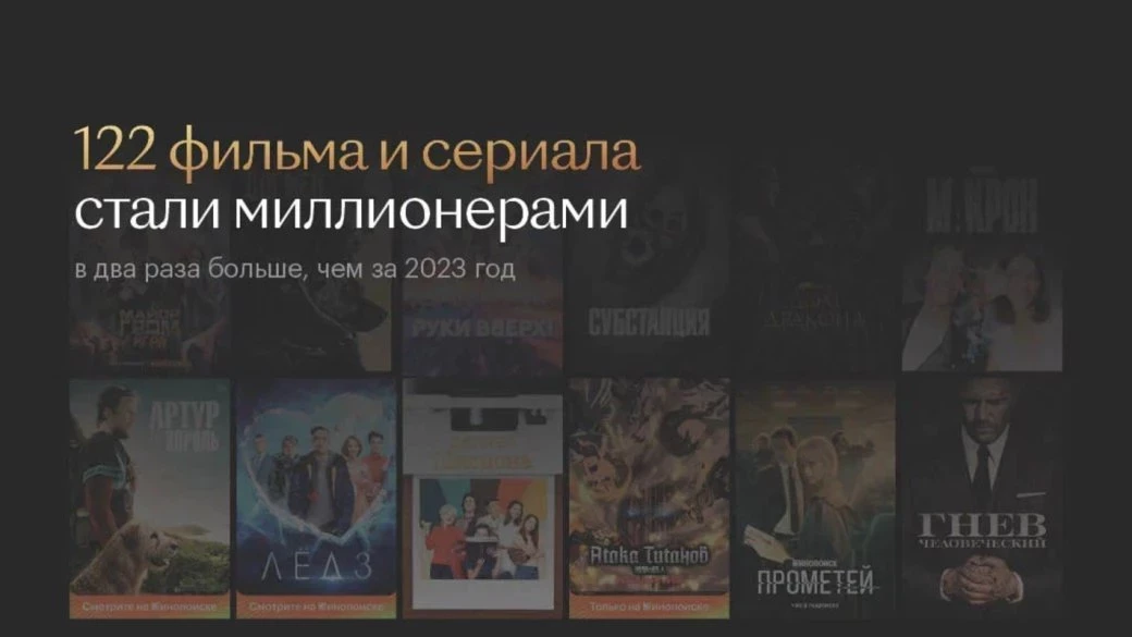 В 2024 году зрители в среднем потратили на просмотр контента на 25% больше времени, чем в прошлом. Обычно один подписчик за год смотрит около 35 фильмов и сериалов и 11 спортивных трансляций.