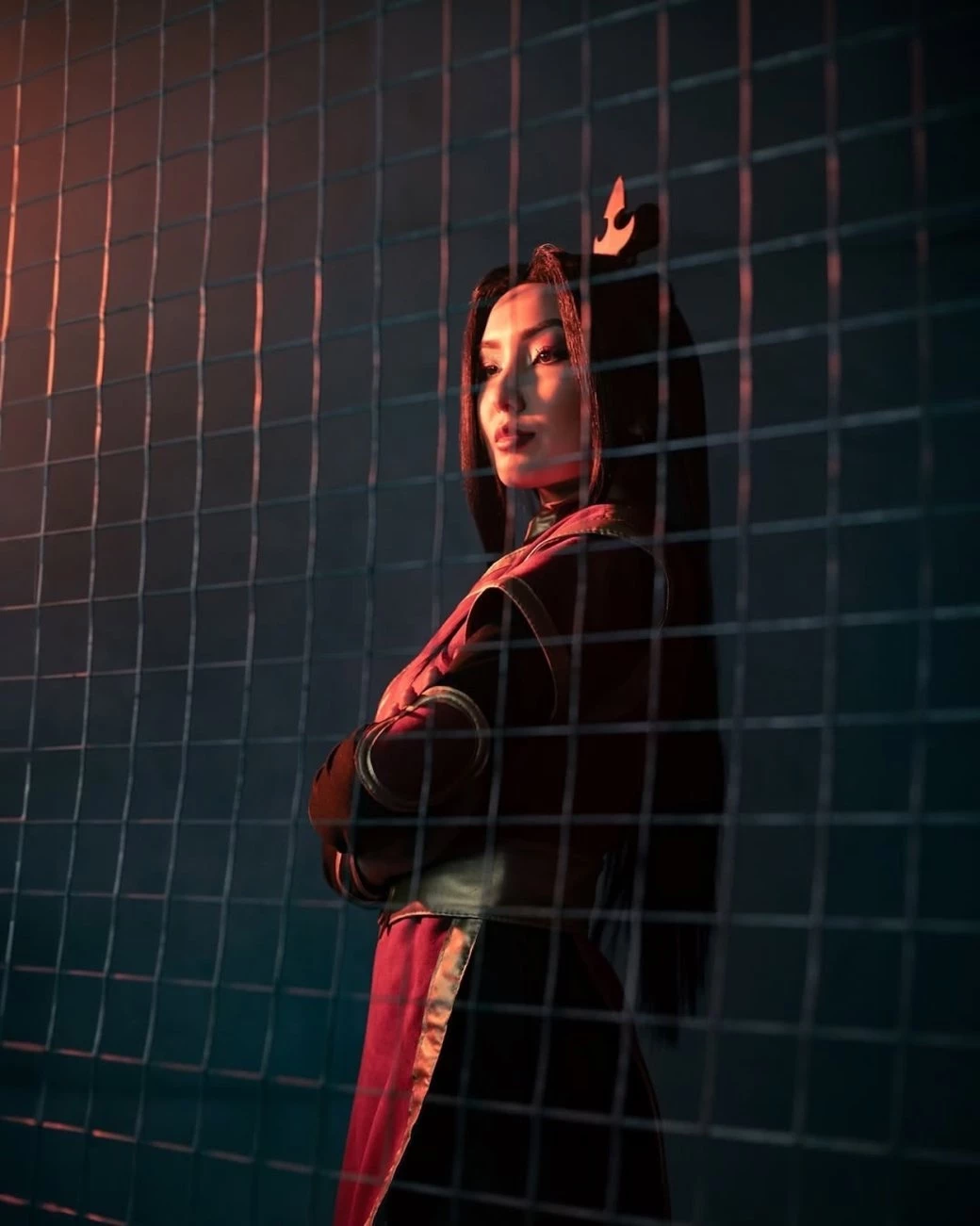Кастер показала героиню в одежде традиционного огненного народа: красное одеяние с золотыми узорами, которое подчёркивает статус принцессы. Высокие сапоги из кожи или ткани, соответствующие костюму, делают её образ ещё более завершённым и элегантным.