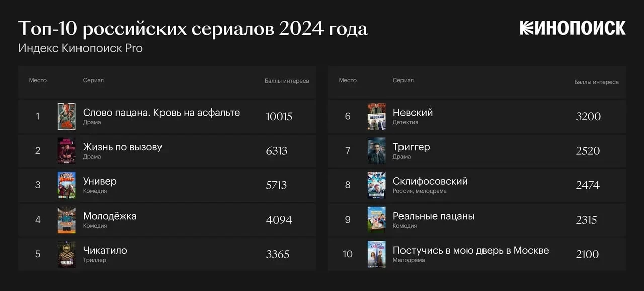 Сериал «Слово пацана» возглавил тематический топ «Кинопоиска» за 2024 год в России