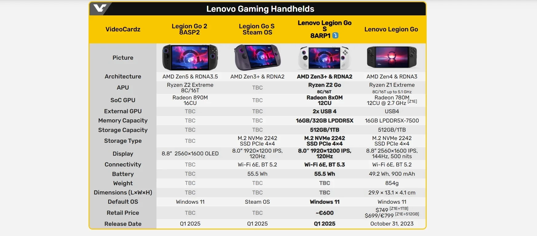 По слухам, Lenovo также собирается представить Legion Go 2 и Legion Go S на базе SteamOS. Последняя — это модель в серой цветовой гамме. А Legion Go S на базе Windows выполнена в белом цвете.