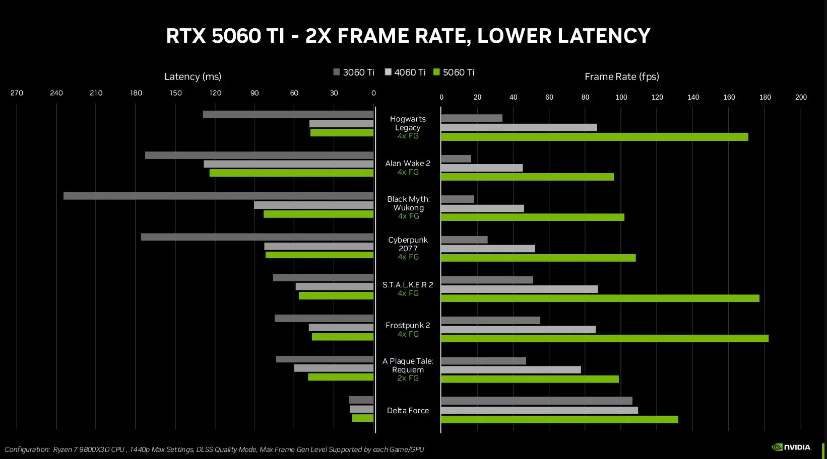 Nvidia показала GeForce RTX 5060 Ti и 5060 и сравнила их с прошлым поколением видеокарт