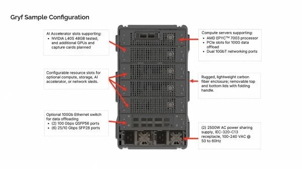 Компании GigaIO и SourceCode объединились, чтобы предложить миру ультрапортативный суперкомпьютера для нужд ИИ. Gryf весит 25 кг или меньше и упакован в чемодан для ручной клади. Несмотря на небольшой форм-фактор, Gryf может обеспечить сбор и обработку данных в масштабах, которые в противном случае потребовали бы отправки данных за пределы площадки. Это интересное решение для вариантов использования, требующих быстрой обработки и анализа на месте.