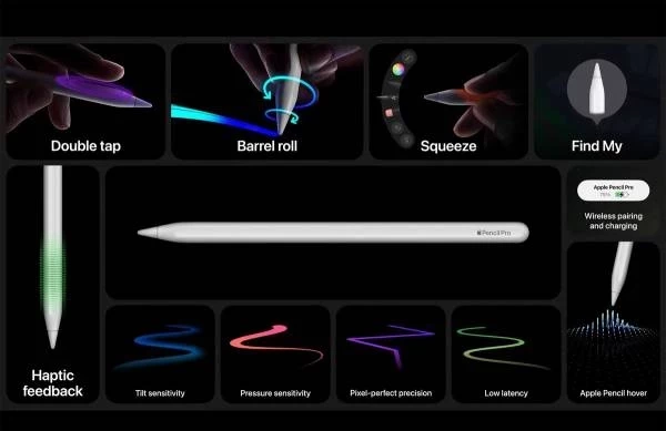 Как и ожидалось ранее и на что сильно намекали логотипы мероприятия Apple Let Loose, был представлен новый Apple Pencil. Apple Pencil Pro теперь занимает место модели второго поколения 2018 года в качестве топовой версии.