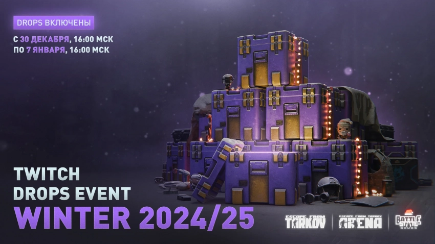 4 фотоПосле релиза патча 0.16.0 в Escape from Tarkov и Escape From Tarkov: Arena пройдёт событие Winter Twitch Drops Event. Стримеры смогут выполнять специальные задачи в PVP ZONE, а зрители — получать за просмотр трансляций drops-контейнеры разной степени редкости.