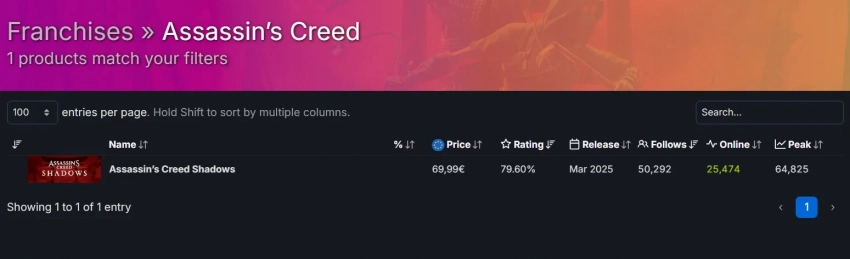 Пиковый онлайн Assassinʼs Creed Shadows в Steam стал рекордным для франшизы