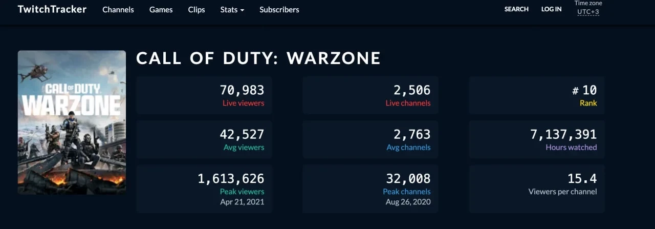 Впрочем, достичь предыдущего пика зрителей игре пока не удалось — он составлял 615 тысяч человек. После этого рекорда просмотры у Warzone были намного более скромными, они не собирали даже 300 тысяч зрителей.